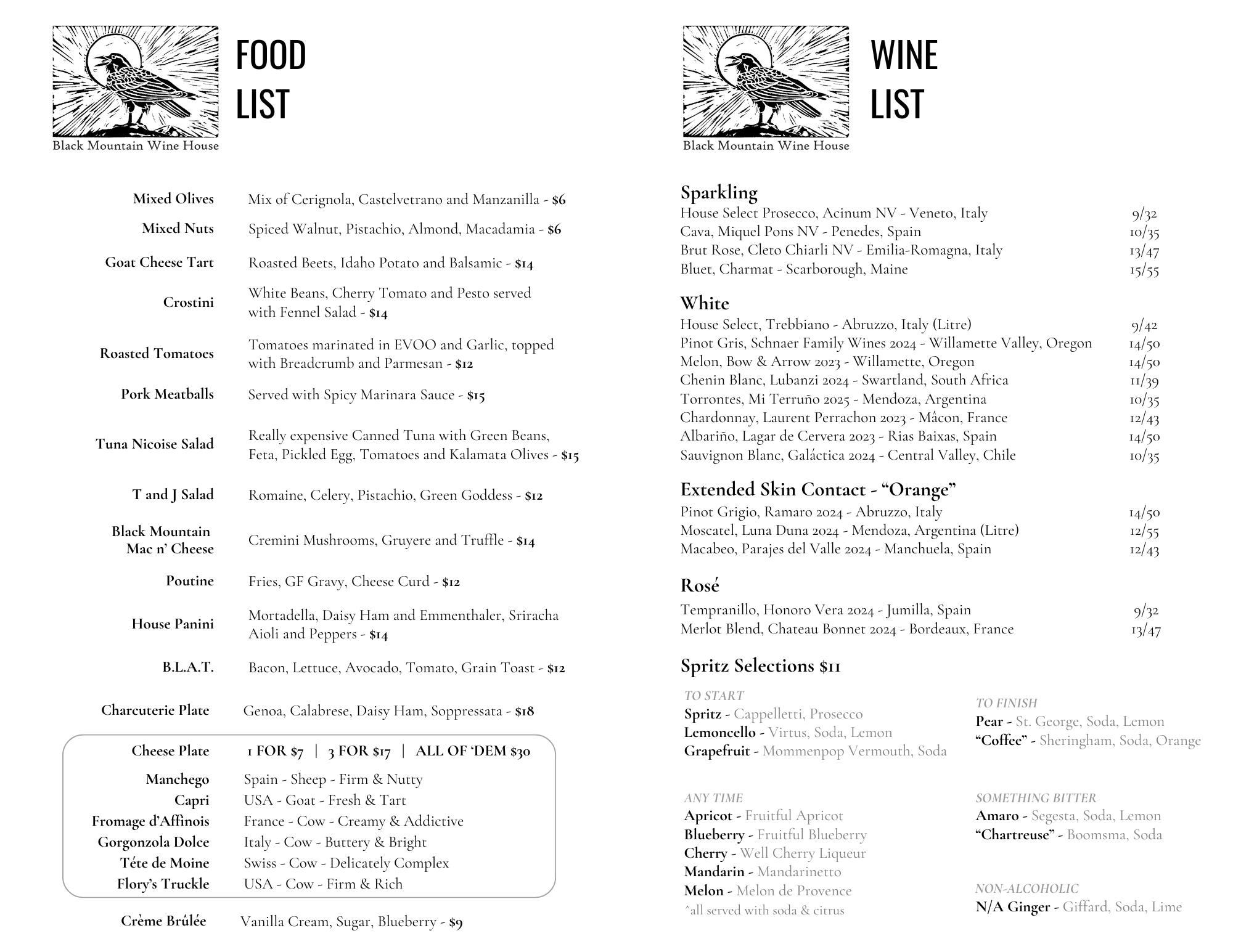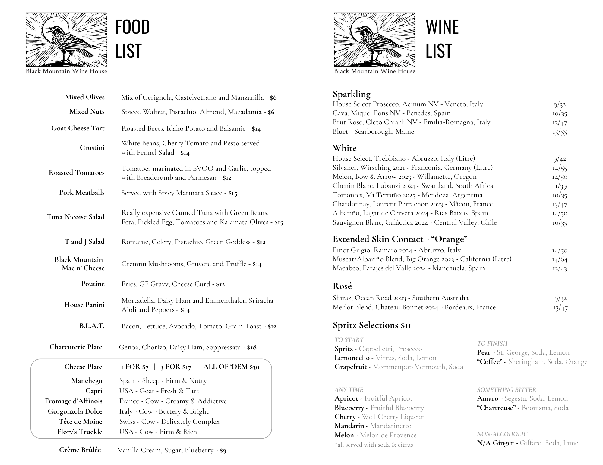 Our menu